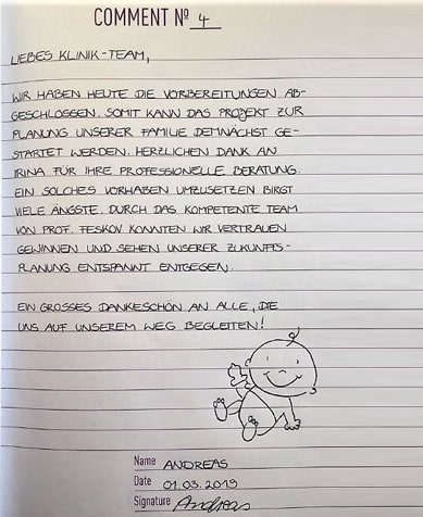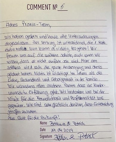 Waren Sie unser Kunde? Teilen Sie Ihre Erfahrungen und Gefühle mit anderen. Helfen Sie anderen Paaren, Ängste zu überwinden und ein lang erwartetes Kind zu bekommen!