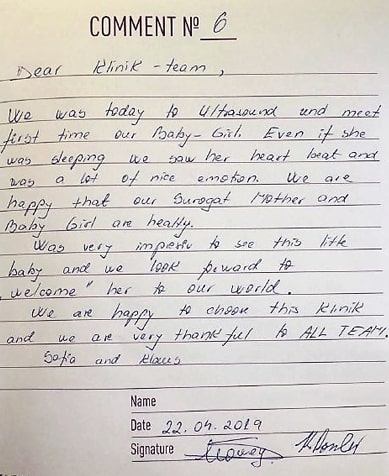 Wir sind allen Kunden für ihre Offenheit, ihr Feedback und ihre Bewertung unserer Arbeit dankbar! Wir respektieren Menschen, die bereit sind, über Leihmutterschaft zu sprechen, ihre Geschichte und ihr Beispiel zu teilen, indem sie anderen Paaren Hoffnung geben.